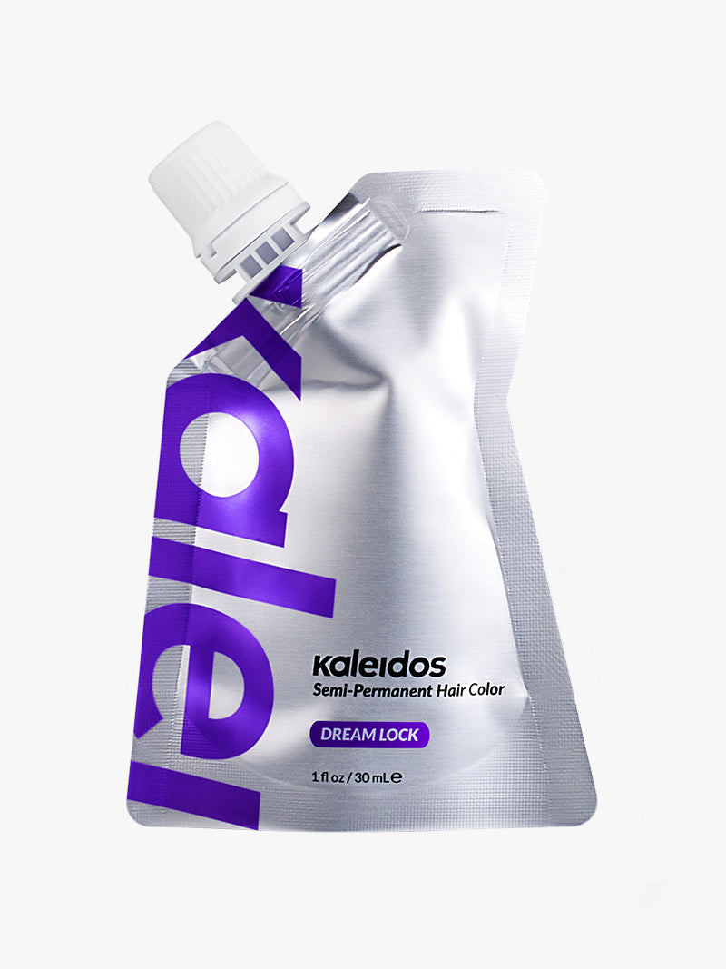 Kaleidos Semi-Permanent Hair Color is a hair color product combining vibrant pigments and a rich blend of natural ingredients in a hydrating hair mask base. It deposits pigments and coats the surface of the hair shaft with vibrant color while also providing a deep conditioning treatment, featuring a powerful infusion of Provitamin B5, Avocado Oil, and Coconut Oil. The product contains no harsh chemicals and is designed for pre-lightened and damaged hair.