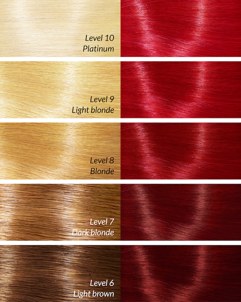 Nirvana is a fervent, scarlet red, timeless and fearless. Most vivid on base level 6 and above. Pre-lightening is essential for optimal vibrancy.