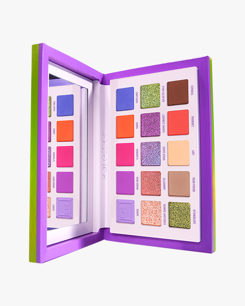 An instant escape to the most sublime realms of your imagination. Fresh, fruity, multi-hued and marvelous, this 15-shade palette is an exuberant celebration of eccentric elegance. Bursting with vibrant violets, luxurious duochromes, and a festive spectrum of bright, ultra-pigmented mattes, the Escape Pod handles like a dream and will navigate smoothly to the most extraordinary destinations you can dream up. Sit back, relax, and enjoy a first-class trip to a rendezvous of color like no other.