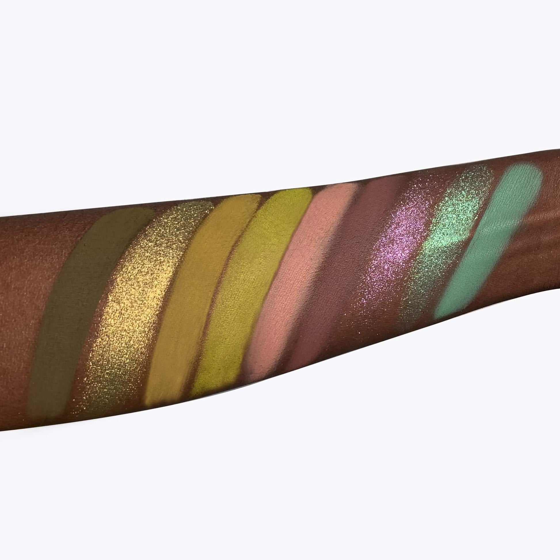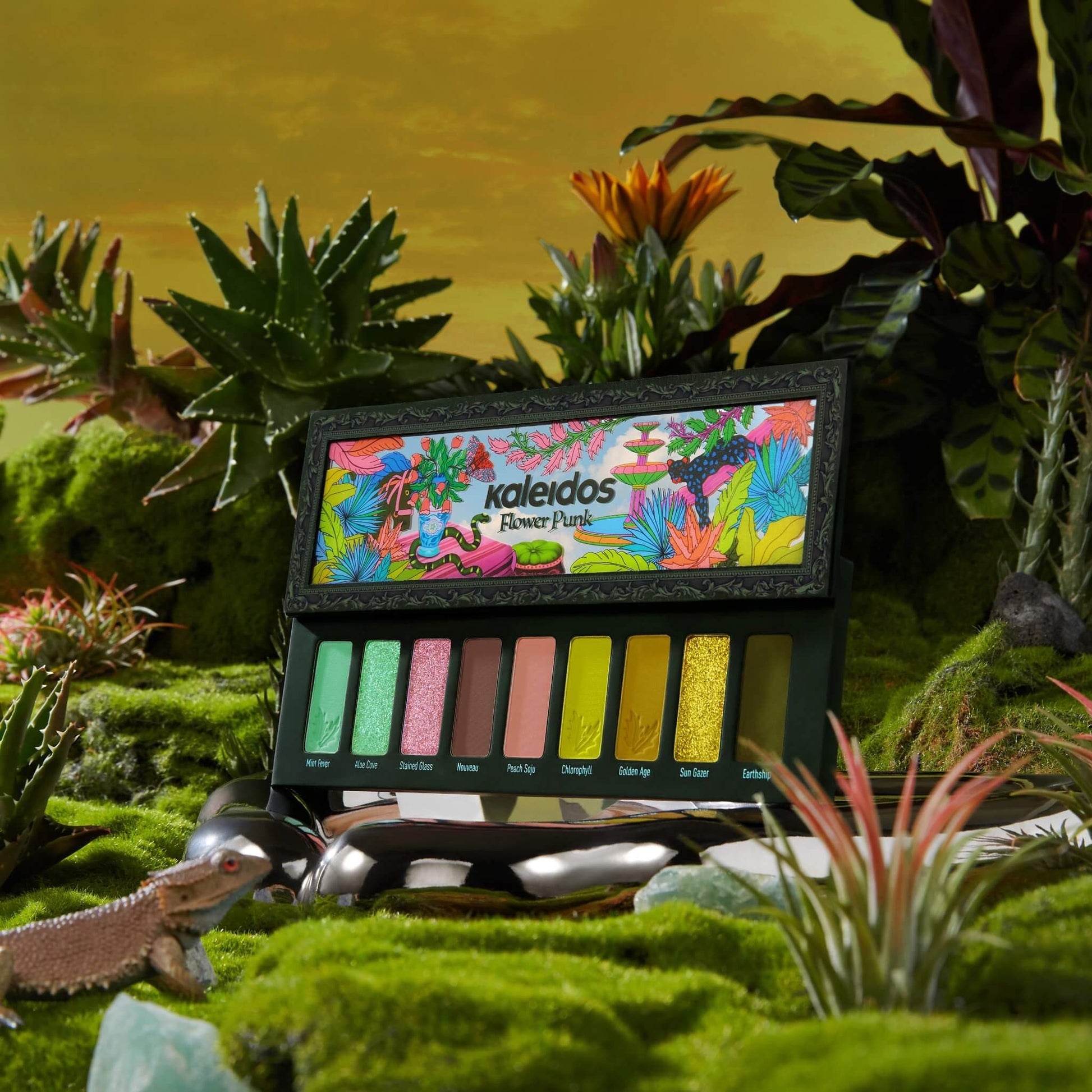 A radically verdant vision of lush golden greens and soft, earthy tones. Brimming with brilliant duochromes and soothing, natural mattes, this 9-shade palette is a color atlas for navigating a wild new makeup paradigm. Defy dreariness with sunny green graffiti and color-in a luscious, lively path of your own. To dream up a vibrant future, this palette is the essential tool for the modern flower punk.