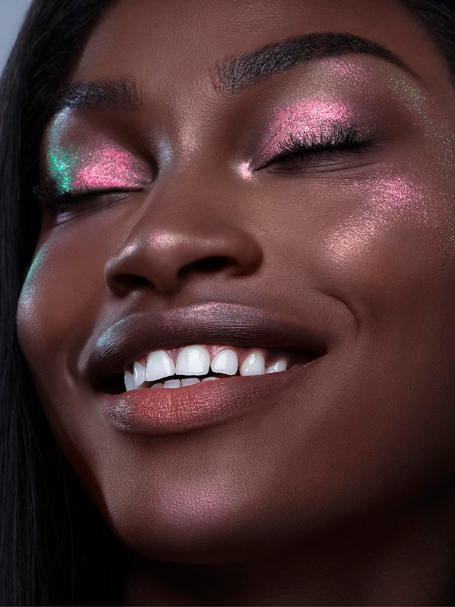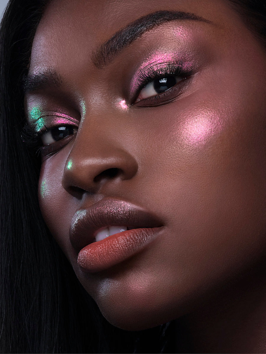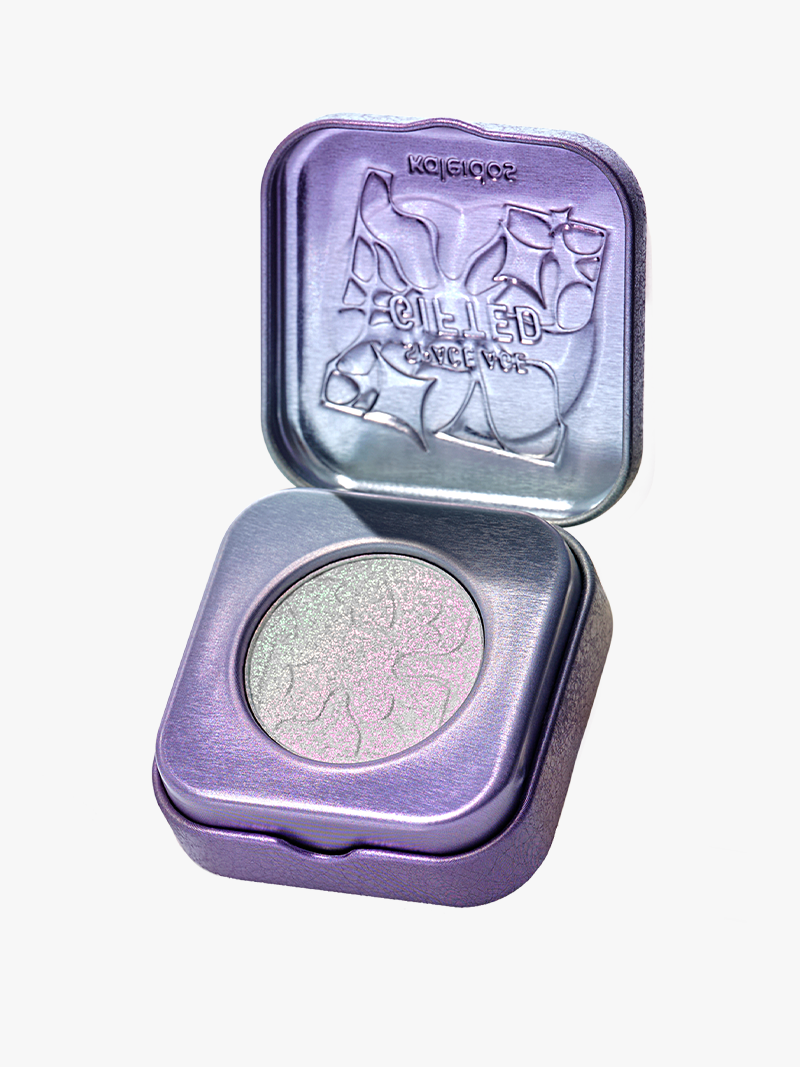 The newest member of the Space Age Highlighter family, the Space Age Gifted multichrome highlighter is in a category of own. With an extraordinarily smooth and exquisitely blendable formula, this phantasmal highlighter shifts fluidly through a spectrum of four different hues yet can blend perfectly into skin for a luxurious natural finish.